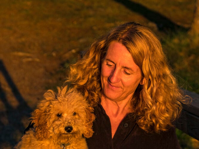 Sometimes, a physical echo in these duos is even visible – golden fur, warm color, yet what really convinces it is the atmosphere. Both dog and human appear to be really happy to be their location.