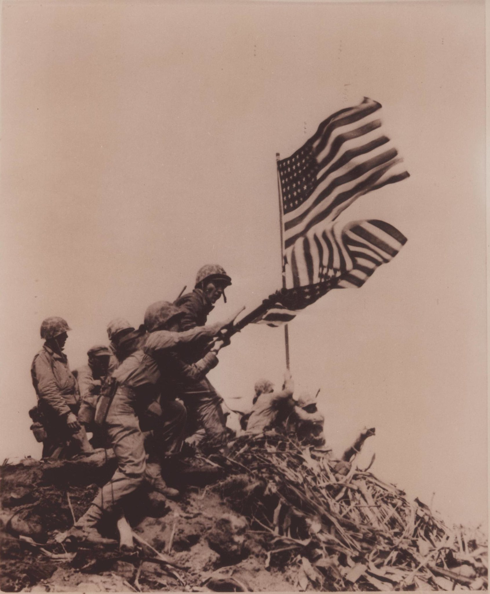 What many people don’t know is that this was actually the second flag raised that day—a larger one replaced an earlier, smaller flag. Three of the six men in the photograph died before the battle ended.