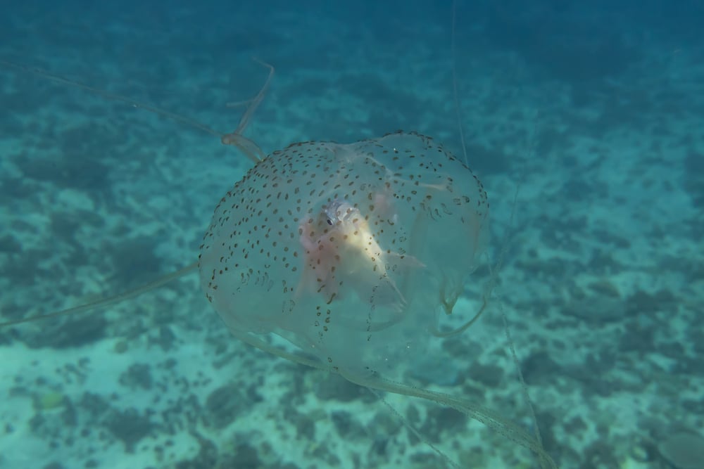 Clear like glass, it blends into the waves without warning. Pain arrives before most realize what has touched them.