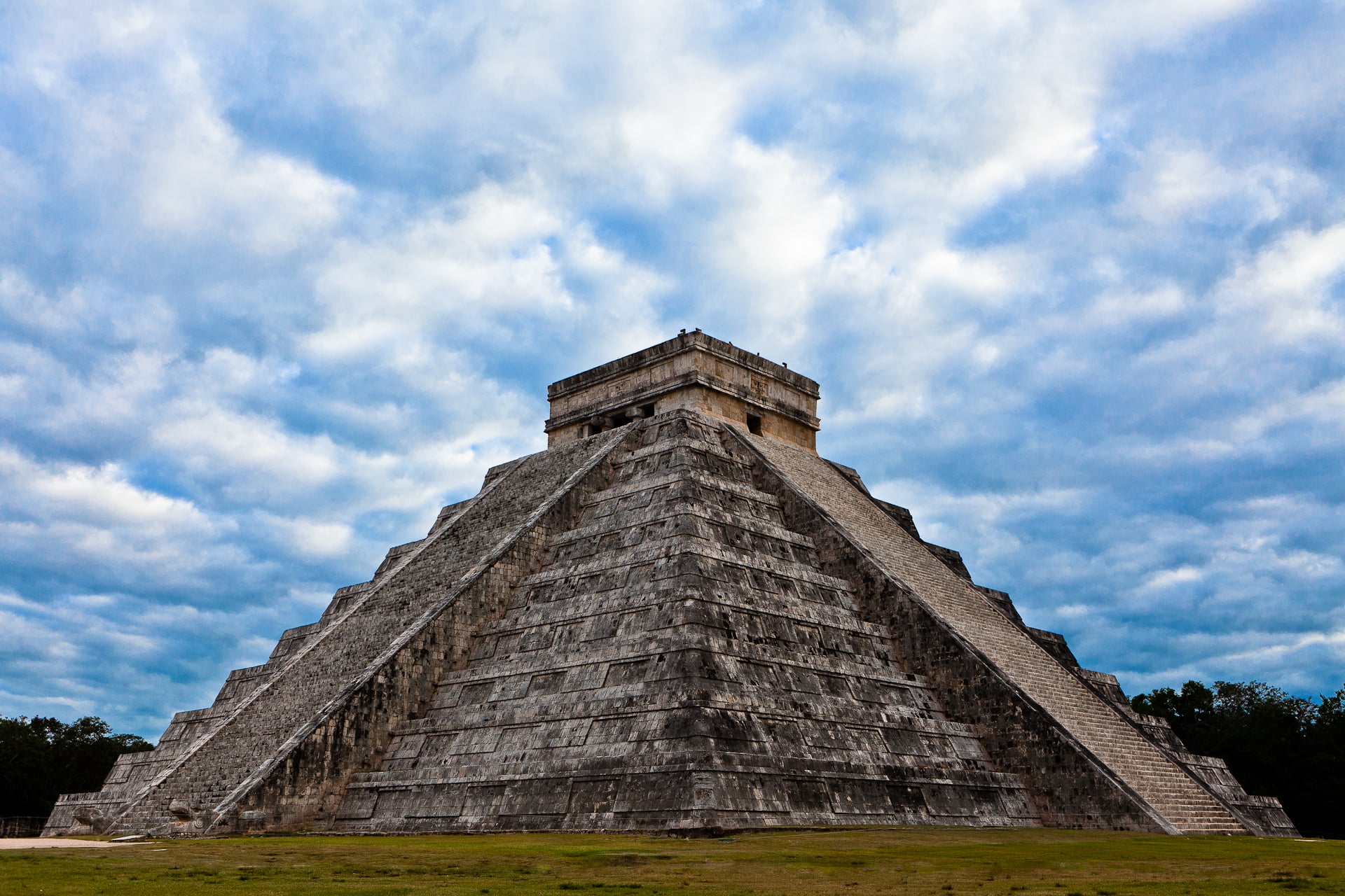 The pyramid originally featured a coat of smooth limestone plaster painted in red, and a temple at the top held ceremonies and rituals. Today, the exposed grey limestone shows significant weathering, and climbing the steep steps is no longer allowed after a tourist’s fatal fall in 2006.