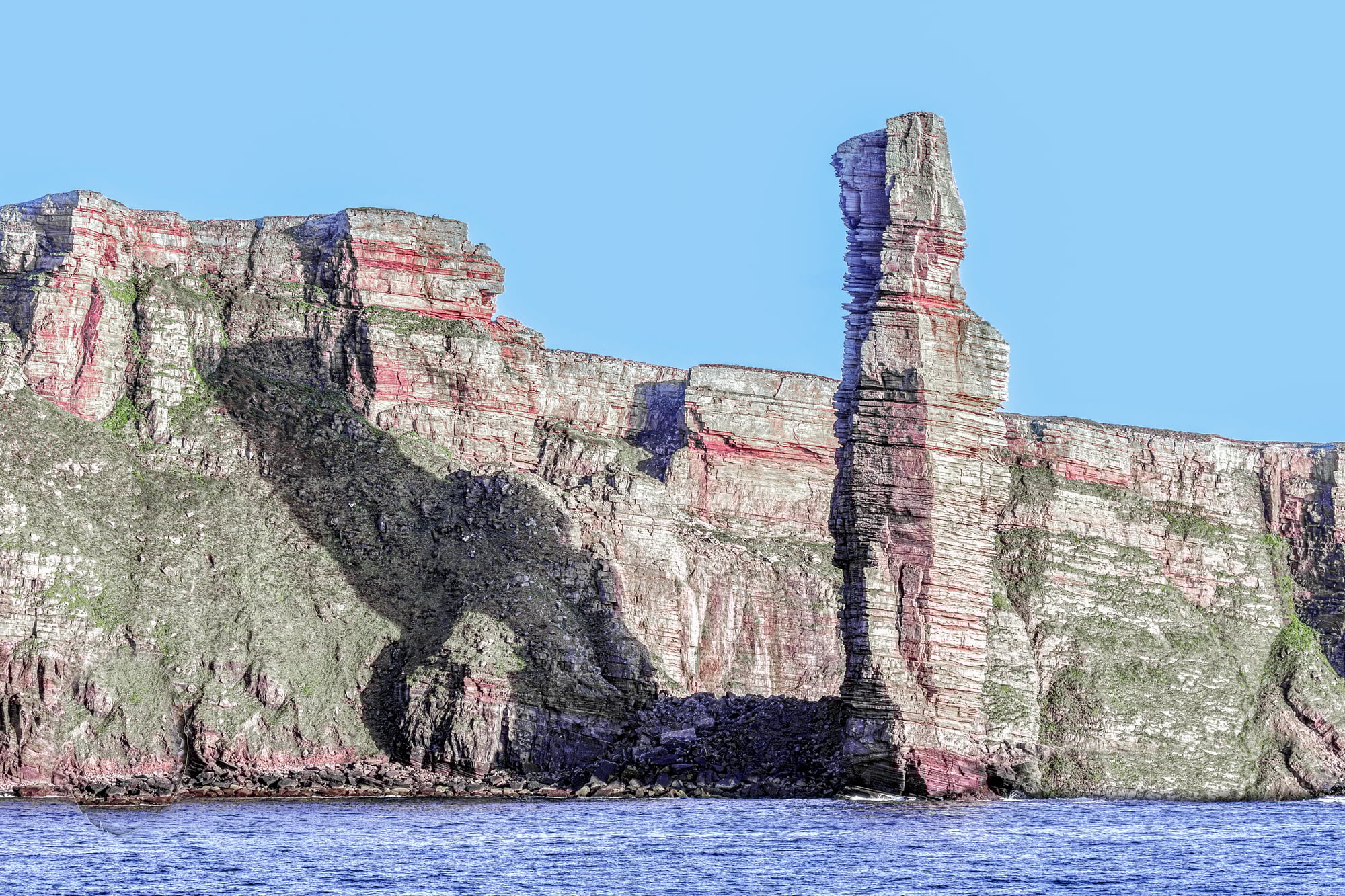The red sandstone pillar rises from the waves off Scotland’s coast with the kind of stubborn dignity that makes you wonder if it’s actually more permanent than the land it once belonged to.