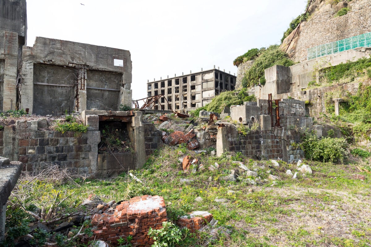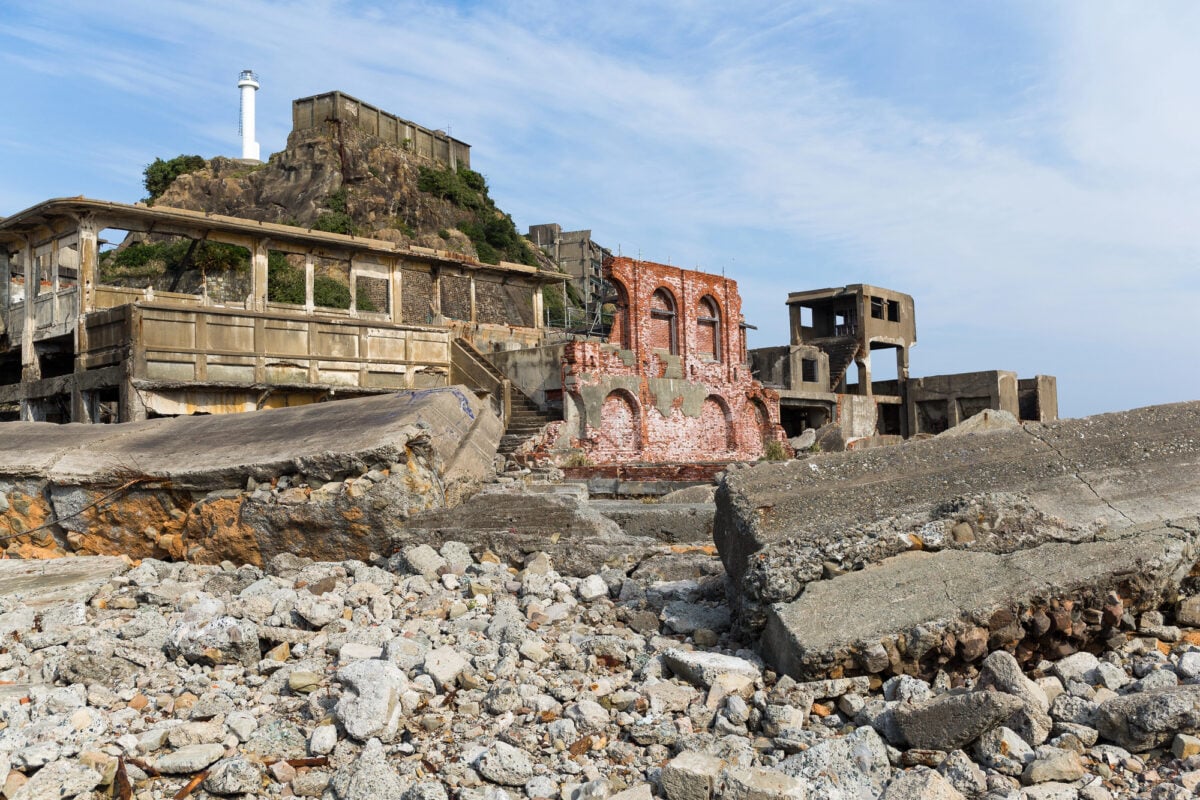 Concrete crumbles into the sea. The island looks like a battleship from a distance, which is exactly what earned it the nickname Gunkanjima.