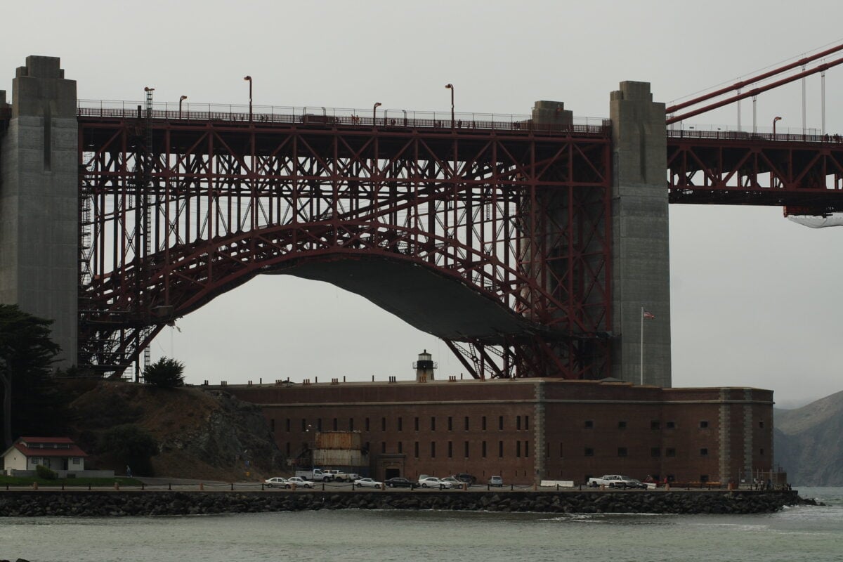 San Francisco’s Golden Gate strait was just that in 1933. A stretch of water with Marin County on one side and the city on the other, connected by nothing but ferry boats and wishful thinking.