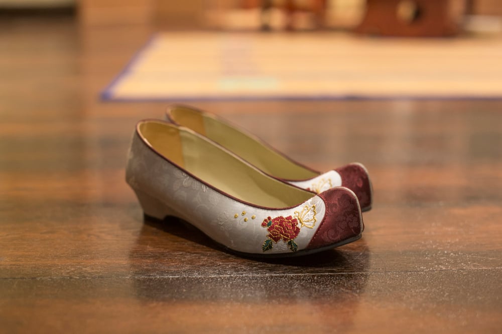 Kkotsin translates to “flower shoes,” and they live up to their name with embroidered designs that transform footwear into wearable gardens. These traditional Korean shoes feature upturned toes and are decorated with intricate floral patterns, birds, and butterflies that seem ready to flutter away from the silk fabric.