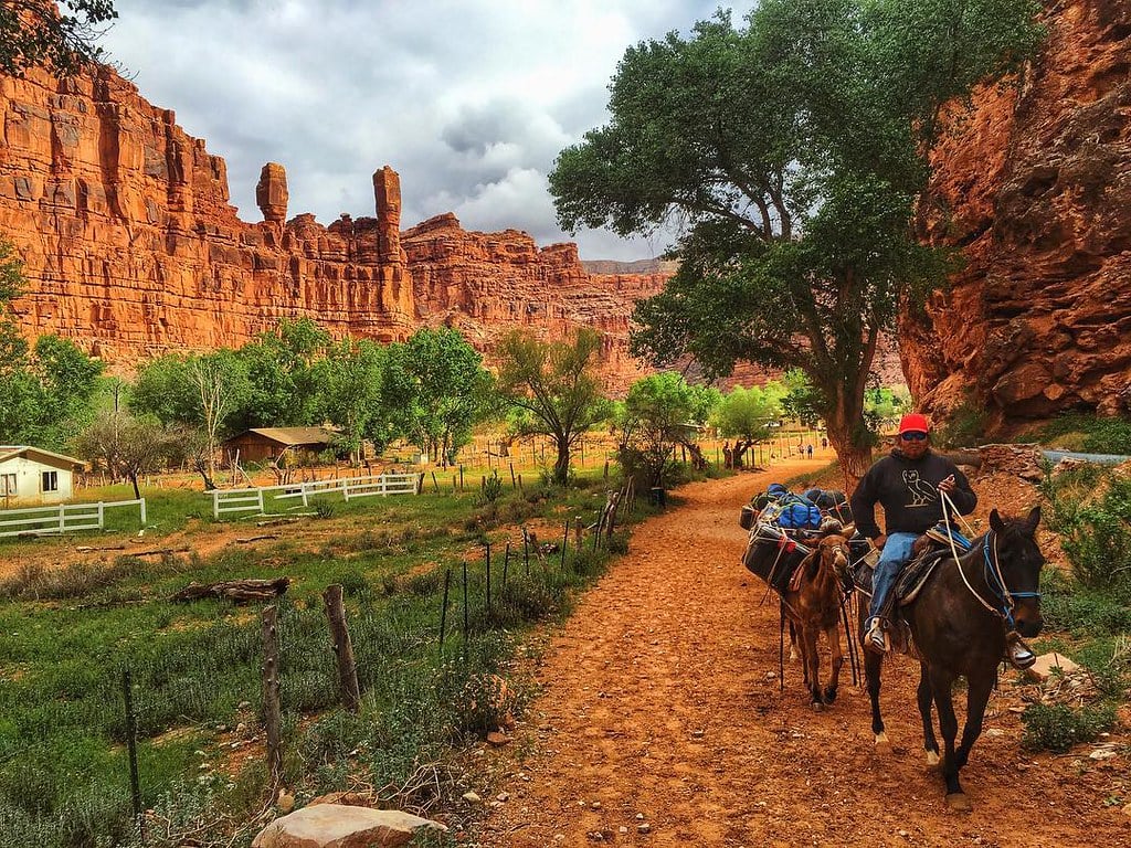 Mail still arrives by mule train. The village serves as the main settlement for the Havasupai Indian Reservation.