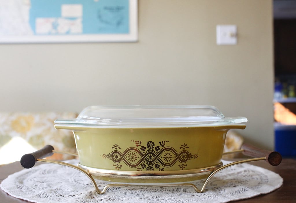 Yes, this pattern features actual eyes staring out from the Pyrex. Created in the 1970s, these pieces were part of a limited run that didn’t resonate with mainstream consumers.