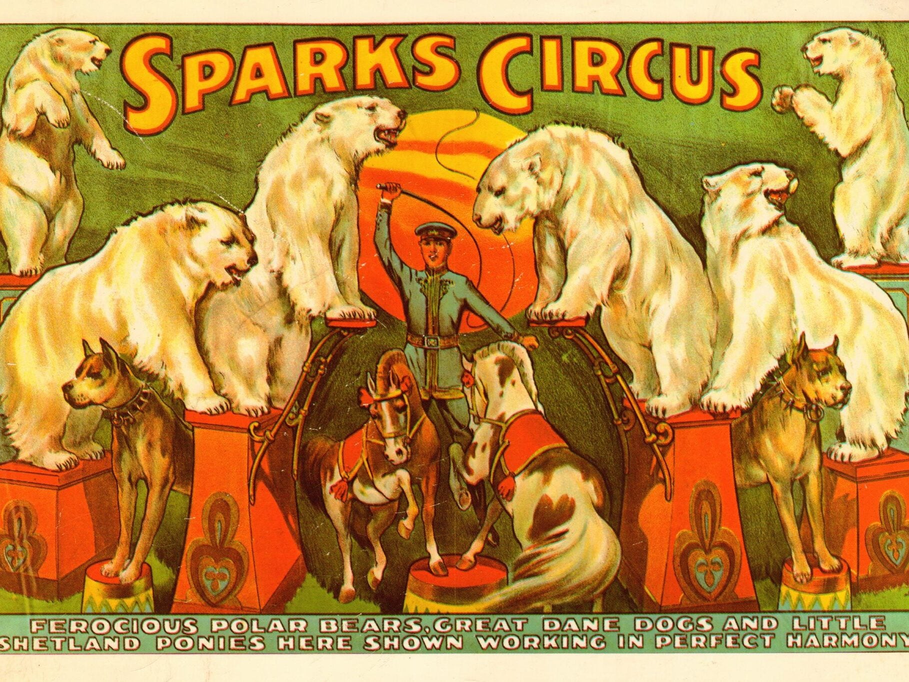 Sparks Circus posters radiate the kind of earnest enthusiasm that’s impossible to fake. You can sense the genuine excitement behind these lithographs – the artists believed in what they were advertising, and that belief transferred directly onto paper through bold colors and dynamic compositions.