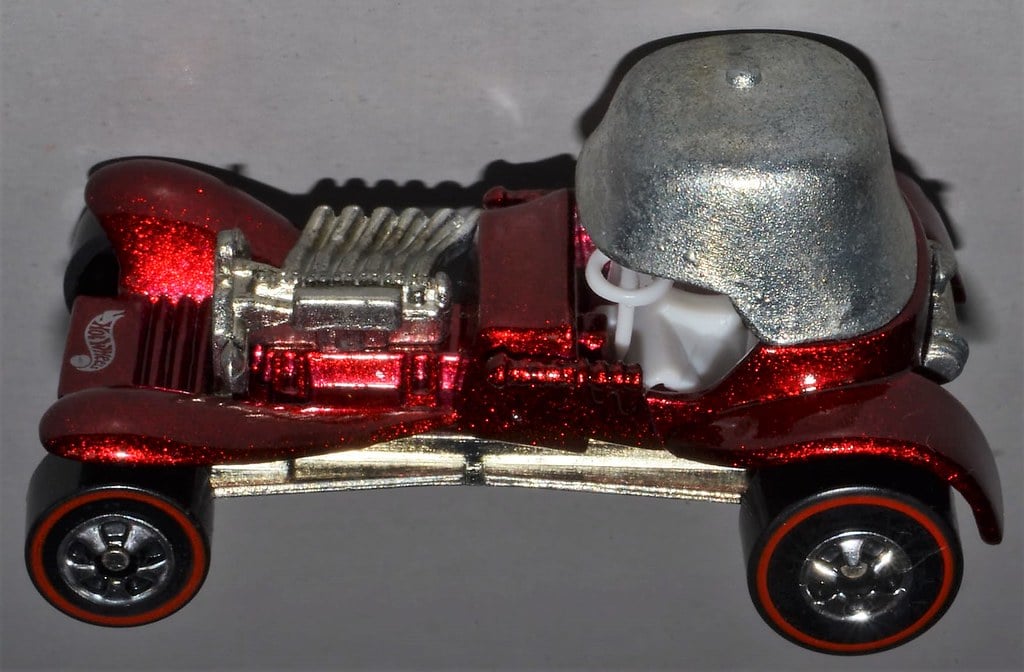 The original Red Baron came with a tiny pilot helmet that was attached to the car during production. These helmets were small, detailed, and apparently very easy to lose if you were a child actually playing with the toy rather than keeping it in a protective case.