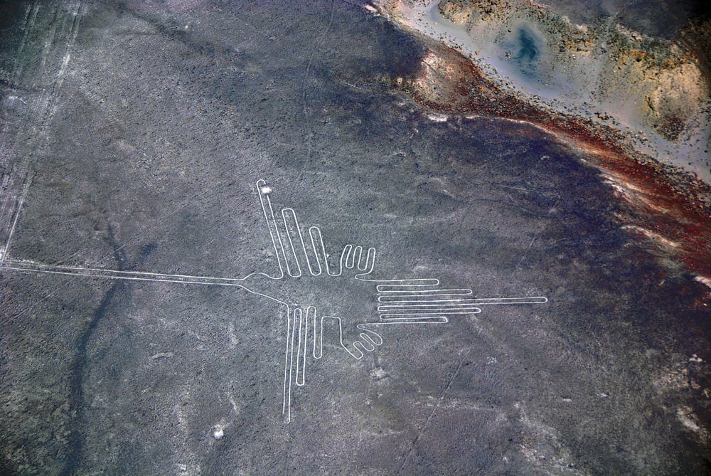 The ancient Nazca people in Peru created hundreds of these massive designs between 500 BC and 500 AD, and researchers still debate why they went through all that effort. The designs include a spider, a monkey, a hummingbird, and various geometric shapes that stretch across 170 square miles of desert.