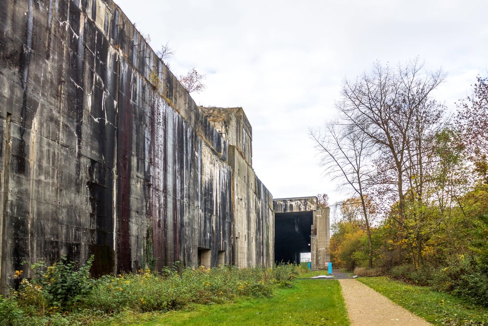 The Nazis intended to construct and repair submarines in this massive bunker, but the war ended before completion. Today, the site stands as both a museum and a memorial to the forced laborers who built it under horrific conditions.
