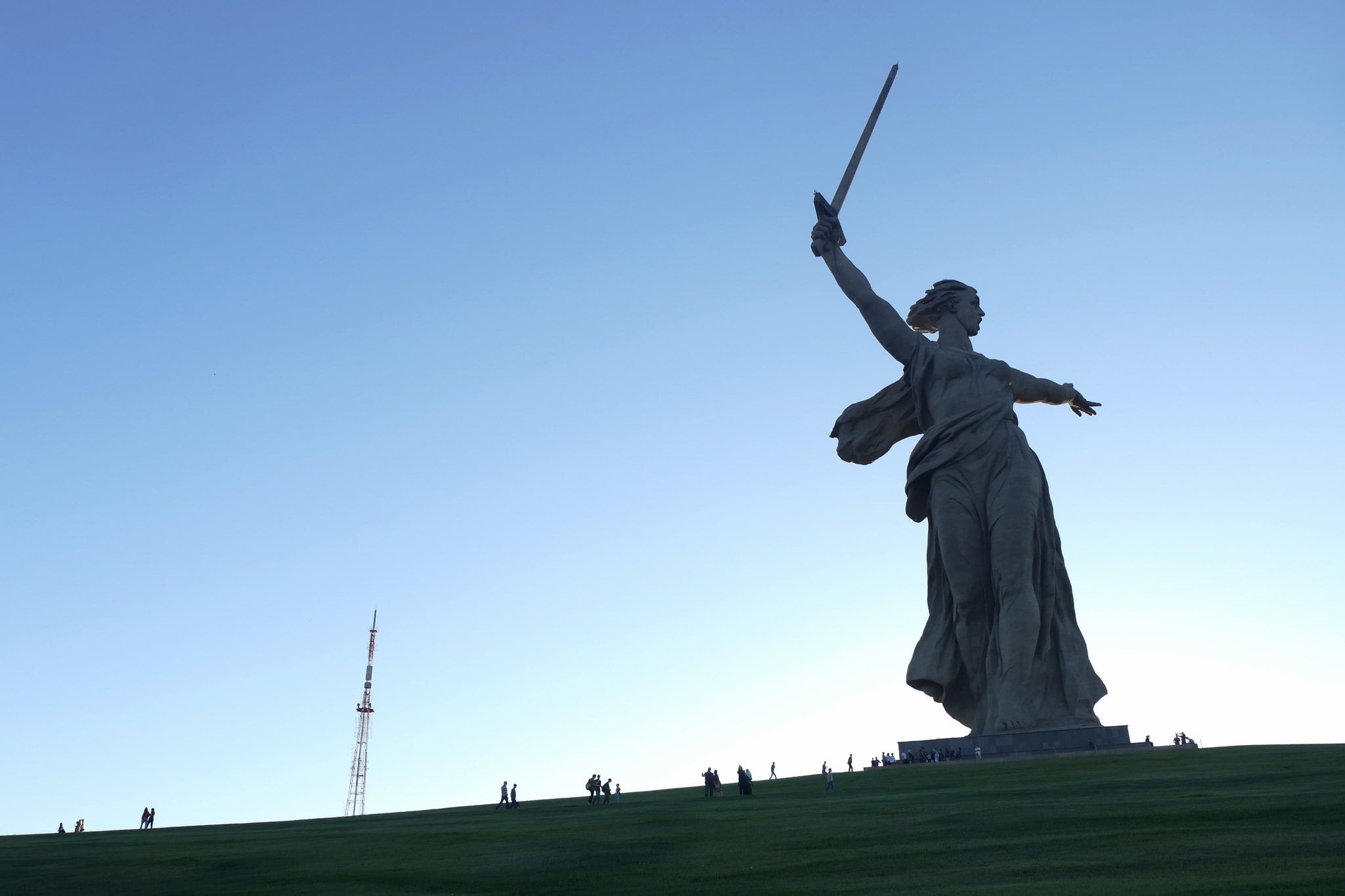 Engineers used special techniques to make sure the hollow structure could withstand strong winds. The statue commemorates the Battle of Stalingrad during World War II.