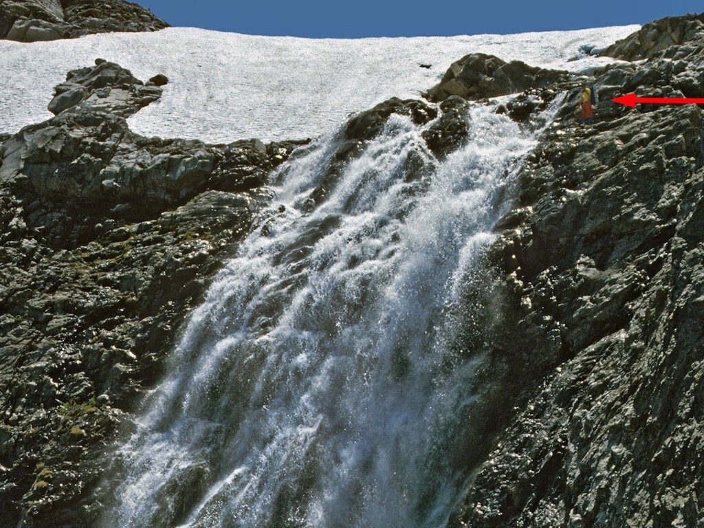 Most people only see it from a distance or in photographs taken by climbers. The falls flow strongest during the snowmelt season.