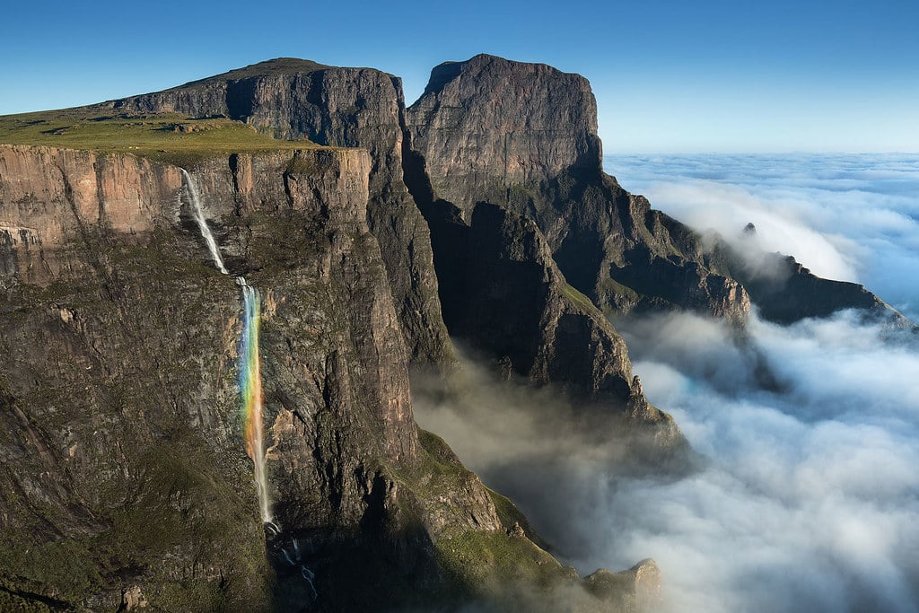 Unlike Angel Falls’ single drop, Tugela cascades over five distinct tiers as it descends. You can reach the falls in two ways.