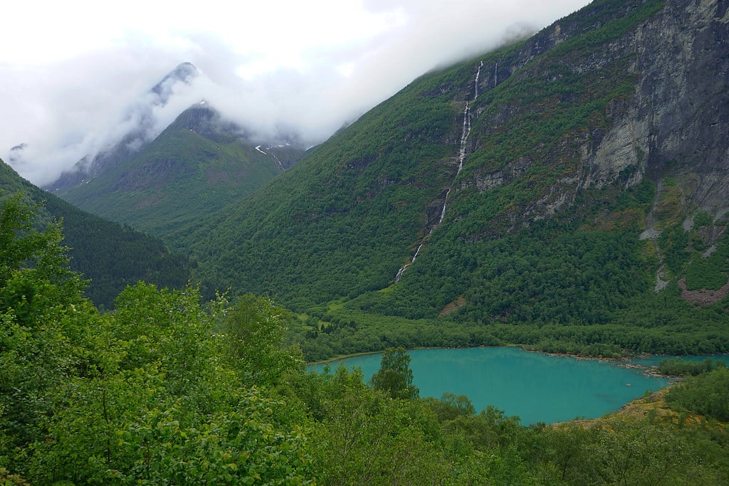Many people stop for photos without realizing they’re looking at one of Europe’s tallest waterfalls. The glacier that feeds Vinnufossen has shrunk considerably in recent decades.
