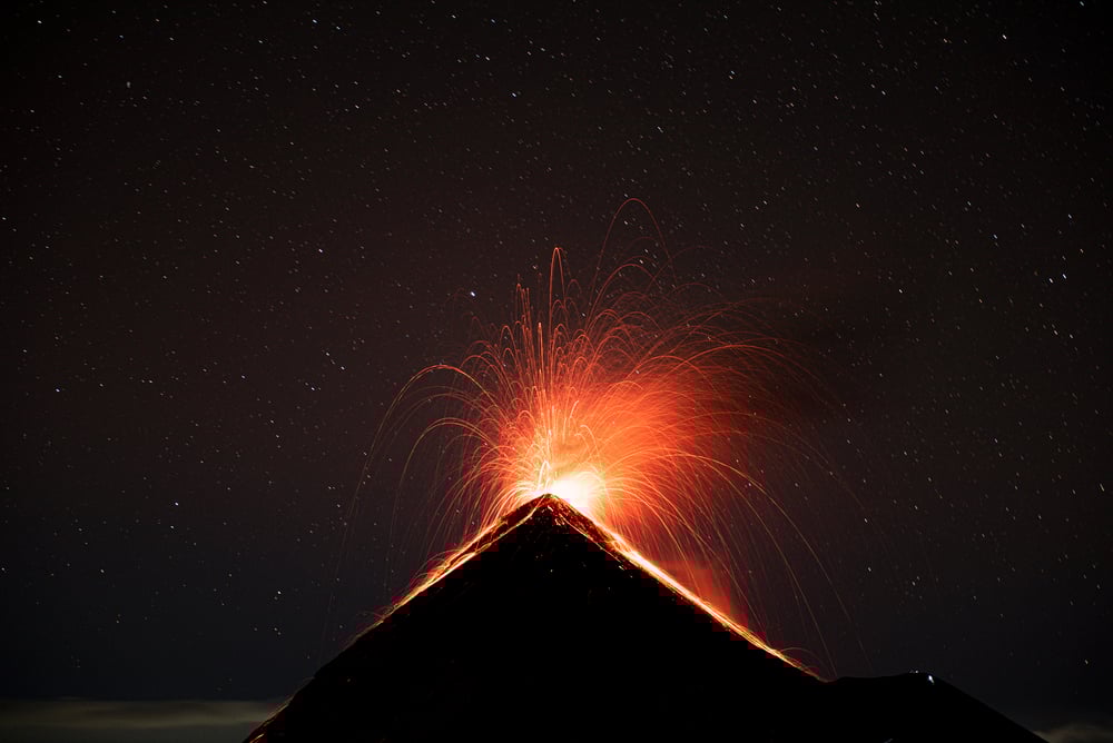 Fuego lives up to its name with the kind of explosive activity that makes volcanologists both excited and nervous. This Guatemalan volcano produces regular Strombolian eruptions — the technical term for the type of volcanic activity that hurls glowing lava bombs hundreds of feet into the air while simultaneously being beautiful and terrifying to witness.