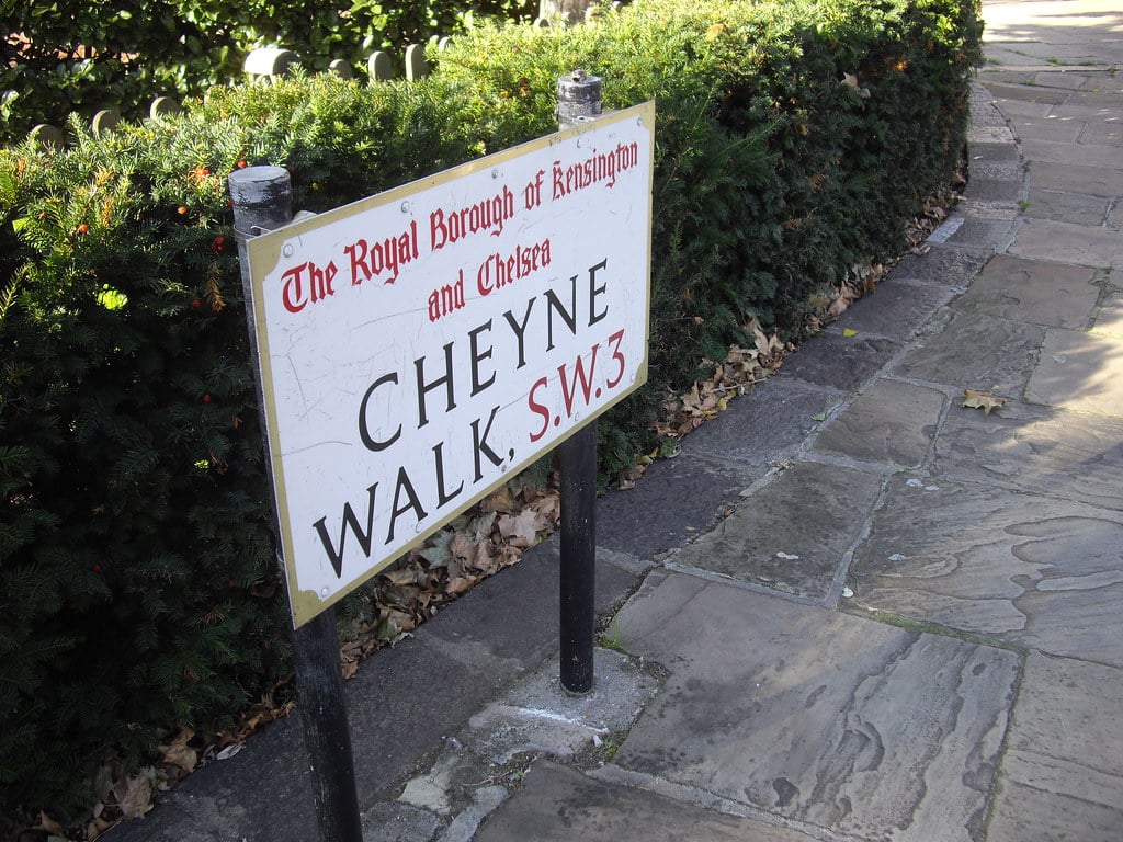 Cheyne Walk runs along the Thames in Chelsea, and it has attracted artists, writers, and aristocrats since the 18th century. Mick Jagger lived here. So did George Eliot and Henry James.