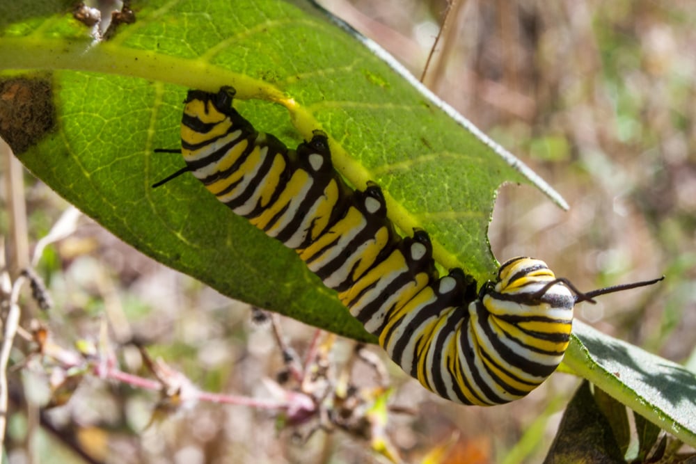 Caterpillars are picky eaters that only consume milkweed plants, which contain toxic compounds called cardenolides. These toxins don’t harm the caterpillar but make the adult butterfly taste terrible to predators.