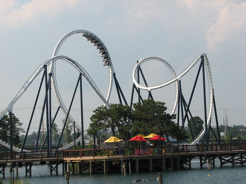 Busch Gardens opened this massive steel coaster in 1992 with high expectations for its intense inversions and unique layout. Riders quickly complained about the rough experience and painful head-banging throughout the ride.