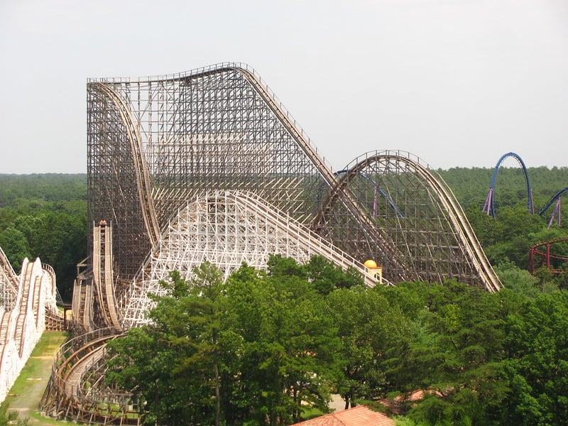 Kings Island unveiled this wooden coaster in 2000 as the only wooden roller coaster with a vertical loop. The ride generated constant maintenance issues due to the immense stress placed on the wooden structure.