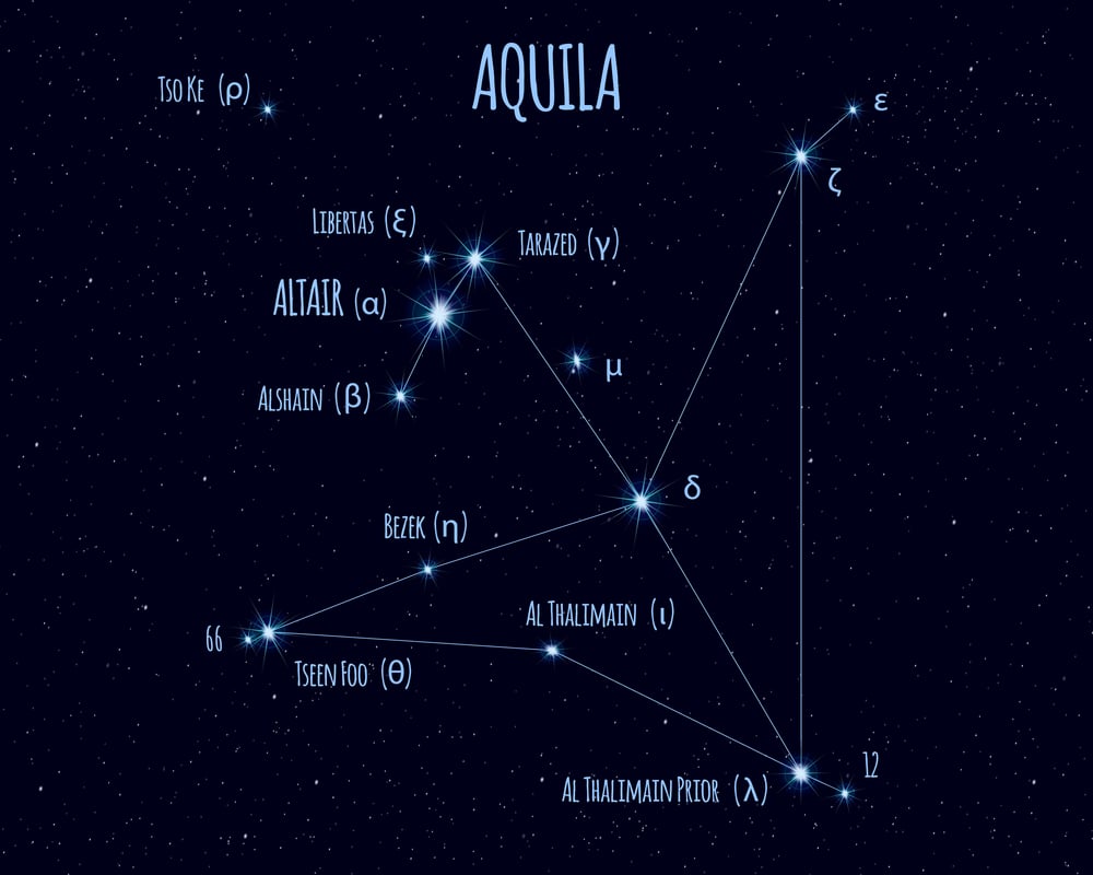 The constellation sits on the Milky Way with its brightest star Altair marking the eagle’s head.