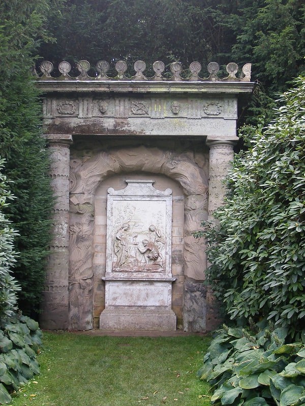 A monument in England shows a reversed painting of a famous Nicolas Poussin artwork with ten letters carved below it. The sequence ‘O.U.O.S.V.A.V.V.’ with a ‘D’ and ‘M’ on either side has puzzled people since the 1700s.