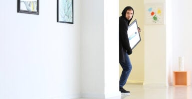 It appears in a space once used for animals, adding a symbol of liberation to a site of violence.