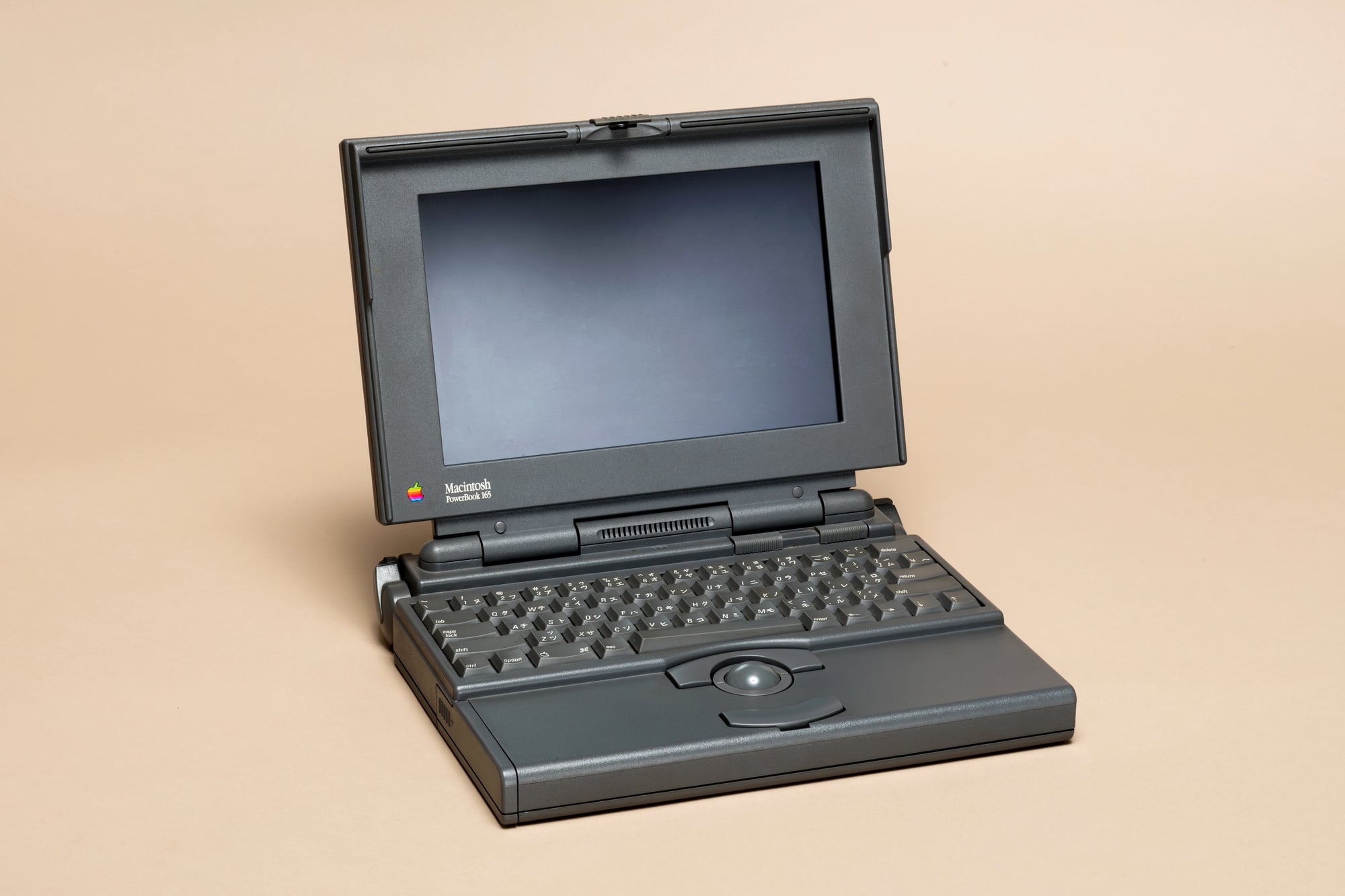 The original PowerBook 100 weighed 5.1 pounds, which felt miraculous in 1991. The keyboard was positioned toward the back, leaving room for a trackball that made the mouse obsolete for mobile work.