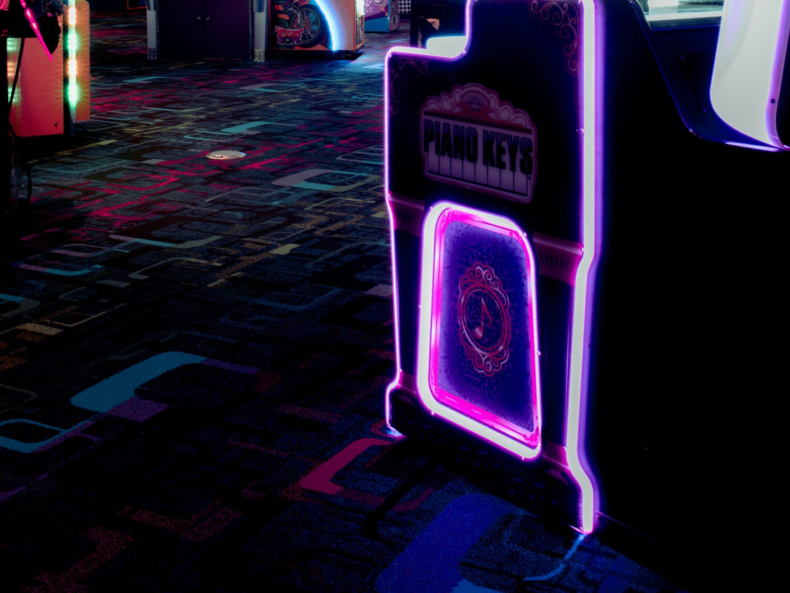 If you look closely at floor-level shots from 90s arcades, the carpet tells a story. Dark colors, geometric patterns, usually some combination of purple and teal that seemed to be legally required.