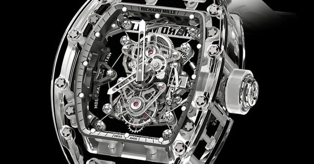 Richard Mille prices this around 2 million to 2.2 million dollars. The movement seems to float inside, visible from every angle.