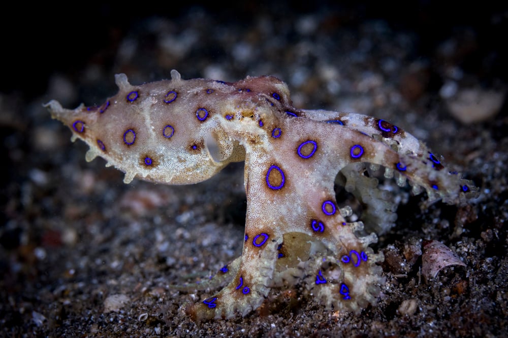 The brilliant blue rings that appear when threatened aren’t decoration—they’re a warning.