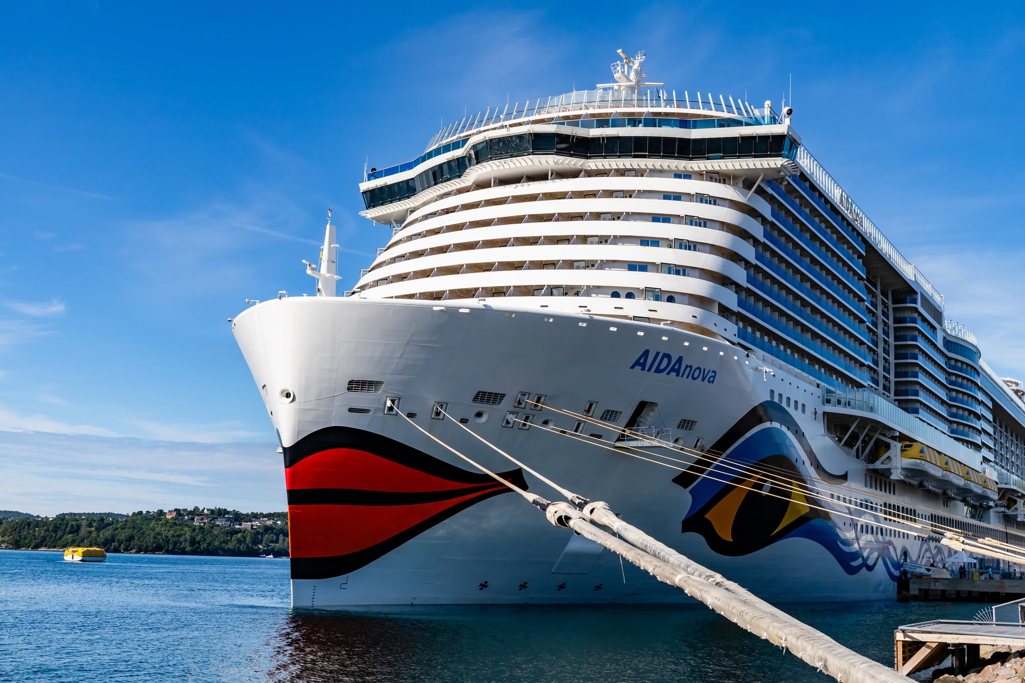 This German cruise ship made history in 2018 as the first large cruise ship powered entirely by liquefied natural gas. AIDAnova is 1,106 feet long and weighs 183,900 gross tons.