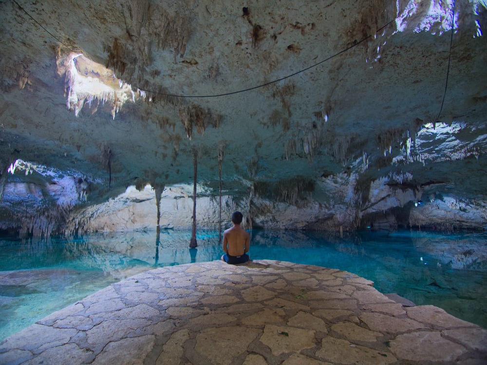 The Dean’s Blue pool takes inspiration from one of the world’s deepest saltwater sinkholes in Long Island, Bahamas. This resort pool features an underwater marine cavern where swimmers can encounter nurse sharks, stingrays, and sea turtles through a swim-up aquarium.