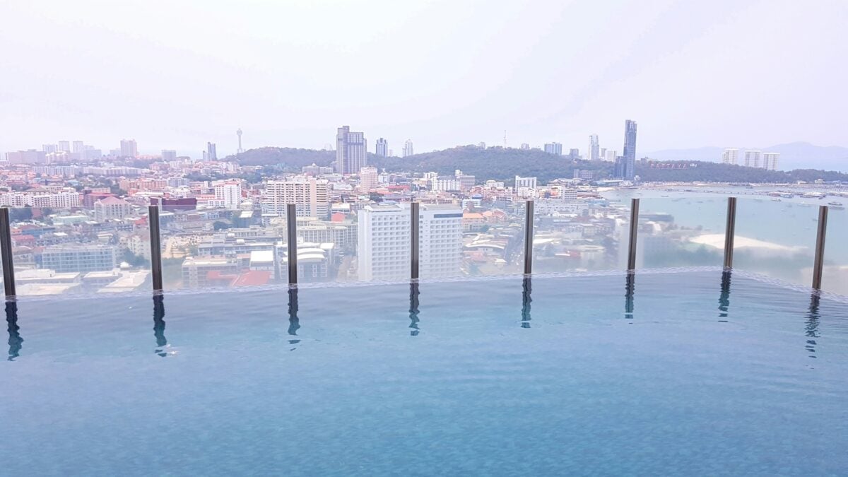 The pool extends beyond the building’s main structure in a way that makes you acutely aware that you’re suspended in mid-air with nothing but glass and engineering between you and a very long drop.